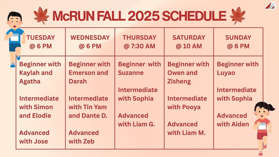 Go the extra mile – Besides regular head runs, McRUN also hosts one-time events! Stay tuned below for our events, including races, socials, and guest speakers.